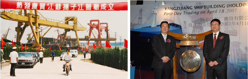 這是船廠的成長階段,船廠選擇了一處更適合未來發展的地緣水域,1974年初在長江邊“蘆灘建廠”,將廠址遷往江陰黃山腳下鵝鼻嘴。1992年江蘇揚子江船廠正式掛牌成立。1999年,公司取消修船、搬遷拆船、發展造船,完成了股份制改制,實現了飛躍。2007年4月,公司采用紅籌模式在新加坡上市,首次募集的55億人民幣;年底,揚子江船業集團成立。