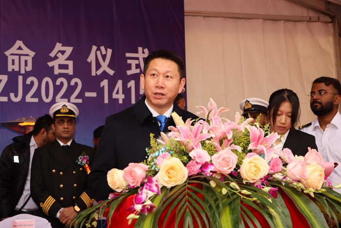 宋書(shū)明先生代表船廠致辭,他表示:“該首制船含春節(jié)建造周期約10個(gè)月,在此過(guò)程中,船東、船級(jí)社和船廠都致力于建造一艘優(yōu)質(zhì)高性能船舶,堅(jiān)信在各方的共同努力下,后續(xù)系列船舶會(huì)有更出色的表現(xiàn)。今天,終于迎來(lái)為該船命名的重要時(shí)刻。感謝船東現(xiàn)場(chǎng)團(tuán)隊(duì)和DNV驗(yàn)船師的支持和幫助以及參與該船建造的揚(yáng)子三井造船員工的不懈努力。讓我們繼續(xù)與船東和船級(jí)社緊密合作,為建造更安全、更環(huán)保、更具國(guó)際競(jìng)爭(zhēng)力的船舶而努力。我們將按照船東和全球市場(chǎng)的需求,用心打造每一艘船?!?/p>
