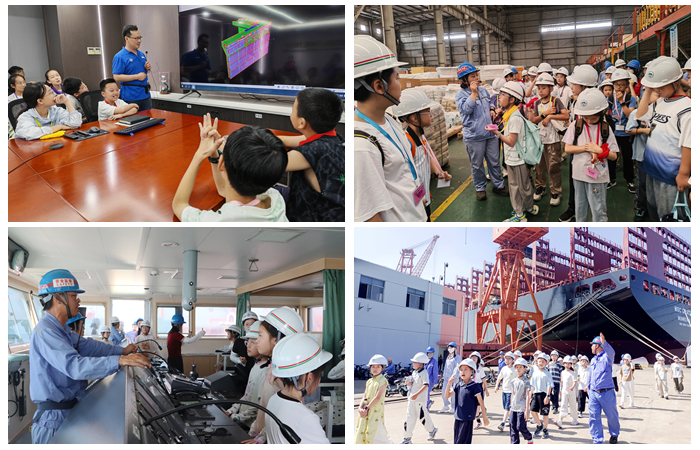 最讓孩子們興奮的是登船參觀環節。踏上甲板,孩子們好奇地四處打量,駕駛室、船員生活區、集控室……每一個區域都吸引著他們的目光。在駕控臺前,手掌著舵,推著車鐘,孩子們仿佛自己也變成了一名操縱萬噸巨輪的船長,心中充滿了激動與自豪。