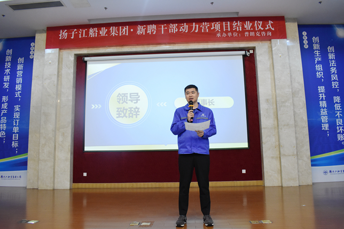 集團(tuán)董事長任樂天為學(xué)員們頒發(fā)了結(jié)業(yè)證書,他恭喜全體49名學(xué)員順利畢業(yè),并指出,本期培訓(xùn)班的學(xué)員都是揚(yáng)子江船業(yè)未來的中流砥柱,通過半年系統(tǒng)的學(xué)習(xí),看到了大家能運(yùn)用所學(xué)的知識武裝自己,能夠做到對外獨(dú)擋一面,對內(nèi)有效溝通,達(dá)到了公司舉辦此次培訓(xùn)課程的目的。任董對學(xué)員們的付出表示肯定,同時(shí)對新聘干部們也提出了更高的要求,管理干部們要做到“德才兼?zhèn)洹保紫仁堑碌酿B(yǎng)成,其次才是才的提升,在平時(shí)的生活工作中做到公平、公正、公開,在管理中要敢擔(dān)大任、敢拔頭籌,用自己的正能量影響自己的團(tuán)隊(duì)。